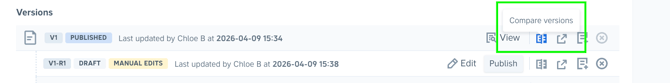 - Select the versions to compare from the top menu