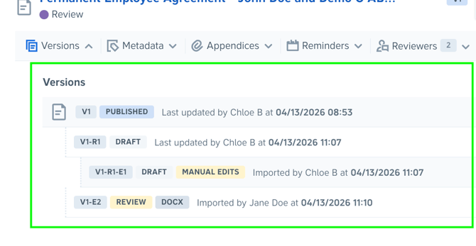 Compare versions to easily identify changes between documents.