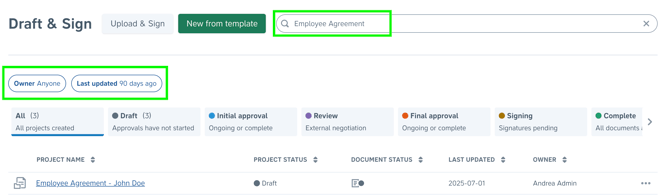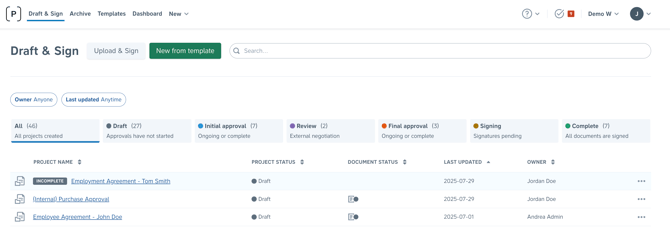 Learn how to use the Draft & Sign and Project pages to create, track, and manage projects.