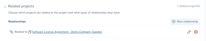 Project relationships can be added within a project to quickly view and navigate to other related projects.